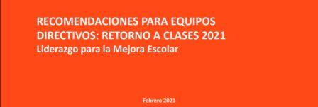 MINISTERIO DE EDUCACIÓN ENTREGA RECOMENDACIONES PARA EQUIPOS DIRECTIVOS ANTE EL RETORNO A CLASES 2021